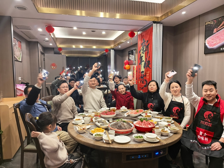 傍晚,轉(zhuǎn)場至臨江苑。火鍋沸騰,紅湯白霧間,沸騰的不只是鮮香食材,更是坦誠交流的熱情。舉杯、暢談、游戲……在氤氳熱氣中,情感在流動,關(guān)于未來的藍(lán)圖也在共同勾畫。